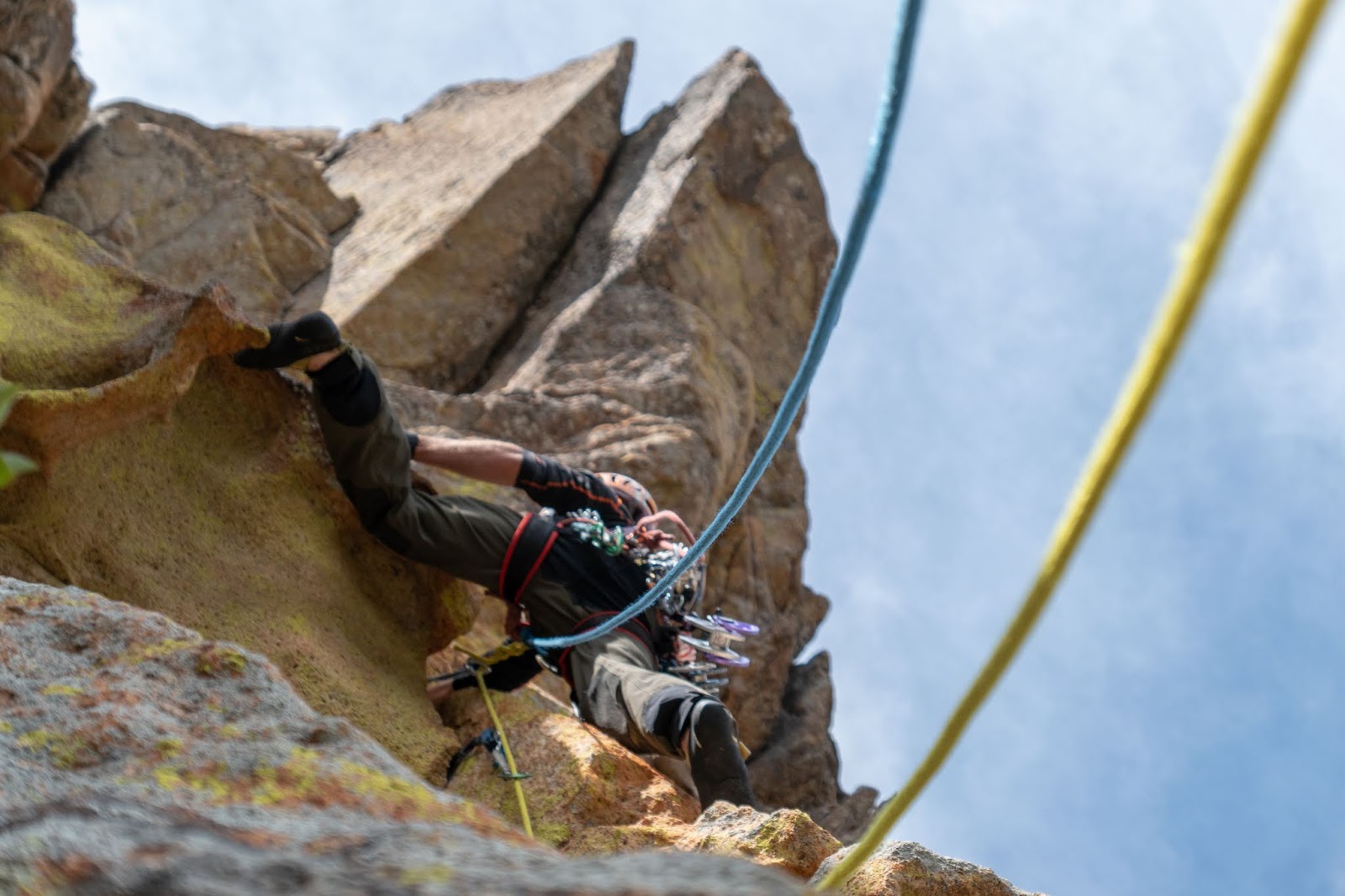 Les longueurs s’enchaînent, belles fissures, cheminée puis orgues granitiques moins compacts.